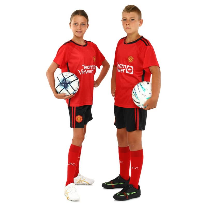 Форма футбольна дитяча PlayGame із символікою Manchester United домашня 2024, розмір XL-30, зріст 155-165, червоний-чорний, код: CO-7185_XLR