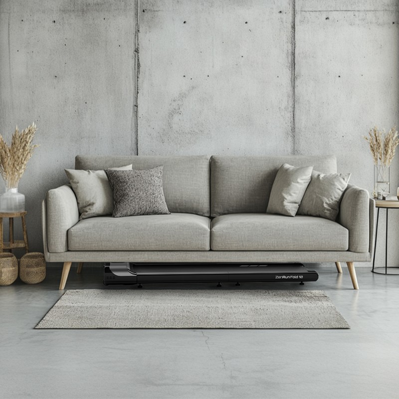 Коли ми говоримо, що його надзвичайно легко зберігати, ми не брешемо. Навіть у робочому стані він практично не займає місця. Більше того, його раму можна скласти навпіл, і тоді він стане ще компактнішим. Таким чином, ви можете легко зберігати складну бігову доріжку inSPORTline ZenRun 10 під ліжком, диваном або за шафою.