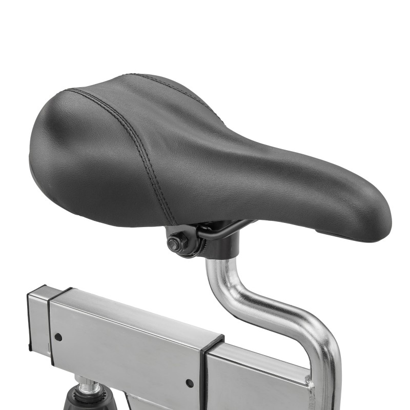 Легко читабельний РК-екран дозволяє відстежувати ключову статистику тренувань у режимі реального часу, що полегшує відстеження прогресу та мотивує вас до подальшої роботи над своєю фізичною формою. Для максимального комфорту під час тренування велосипед оснащений педалями з клітинами та регульованими ременями, а також ергономічним м'яким сідлом.