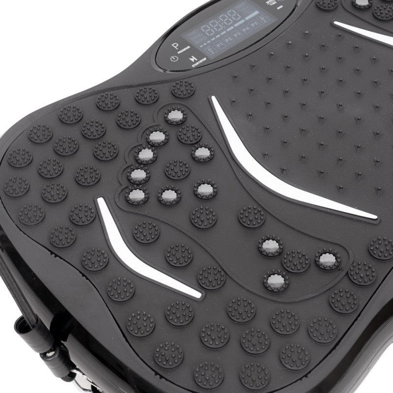 Вібраційна платформа inSPORTline Maviro пропонує цілих 99 швидкостей вібрації. Ви можете змінювати налаштування за допомогою пульта дистанційного керування, що входить до комплекту, або за допомогою панелі керування зі світлодіодним дисплеєм, що легко читається і відображає поточну швидкість, програму та час. Ця віброплатформа має 5 попередньо встановлених програм і 1 ручну програму, що дає вам повний контроль над тренуванням.