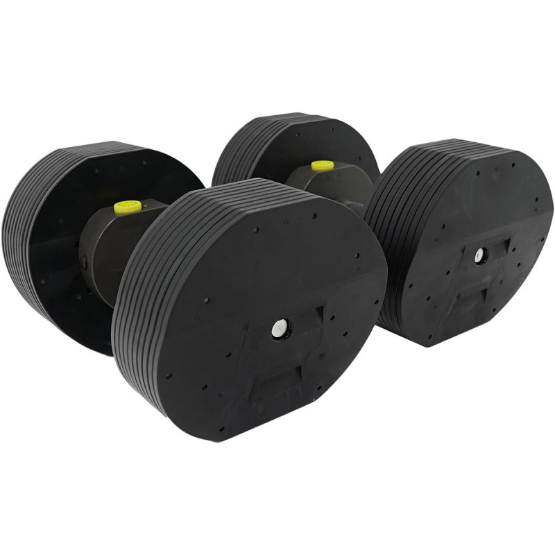 Одна гантель дозволяє тренуватися з 10 різними навантаженнями від 5,6 кг до 38,6 кг .