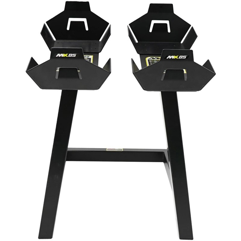 Гантелі MX85 - це набір з двох регульованих гантелей із запатентованою технологією швидкої зміни навантаження , ергономічною формою та антибактеріальним покриттям. Вони замінюють цілих 10 пар гантелей з різним навантаженням, а підставка в комплекті дозволяє тримати речі в порядку.