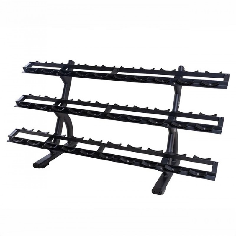 Завдяки триполичній стійці inSPORTline GymRack III у вашому спортзалі завжди буде порядок! Завдяки своїй міцній сталевій конструкції він може витримувати до 600 кг , тому він може виконувати широкий репертуар тренувань. Поверхні полиць закруглені , що означає, що навіть круглі гантелі надійно залишаються на місці. У той же час окремі проміжки між поверхнями досить великі, щоб зручно виймати гантелі.Підставка важить майже 90 кг і також підходить для комерційних тренажерних залів і фітнес-центрів . Коли максимальна ємність буде заповнена, вона вміщає 30 гантелей , тобто 15 пар різної ваги. Ідеально підходить для різноманітних тренувань!