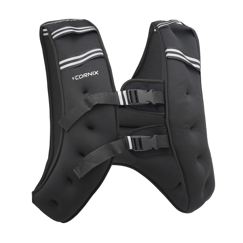 Жилет-обважнювач від Cornix має продуману форму та виконаний з якісних матеріалів. Зовнішня тканина - неопрен, еластична та приємна до тіла. Наповнювач - залізний пісок (iron sand), рівномірно розподілений по всьому жилету. На відміну від інших моделей, в яких обтяження розміщені в спеціальних кишенях, в жилетах Cornix не відчувається, що вага тягне вас в одну чи іншу сторону. Правильне балансування має важливе значення для ефективних та комфортних тренувань. Виріб фіксується за допомогою двох застібок із захистом. Регулювання лямок дозволяє підігнати жилет під вашу фігуру і вибрати відповідний ступінь прилягання до тіла.