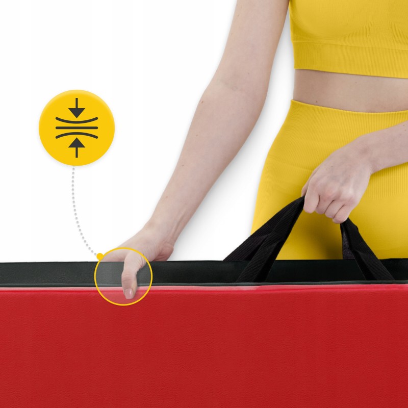 Гімнастичний мат від 4Fizjo складається з чотирьох з'єднаних елементів. Це дозволяє в будь-який момент компактно зібрати його до розміру 120 x 60 x 20 см й таким чином економити простір при зберіганні і транспортуванні аксесуару. Також мат обладнаний зручними ручками для відмінної мобільності. Для виготовлення виробу використовуються високоякісні матеріали, що є гарантією безпеки кожного тренування. Завдяки щільному, але водночас м'якому наповнювачу з пінополіетилену (EPE), досягається відмінний рівень комфорту. У свою чергу, верхній шар виконаний з матеріалу ПВХ, що має низьку схильність до деформації та додає стійкості при заняттях. Поверхня мату легка у догляді, її можна чистити та обробляти дезінфікуючими засобами. Верхній чохол має вбудовану блискавку, це полегшує процес чищення мату, а також дає змогу пересвідчитись у якості наповнювача.