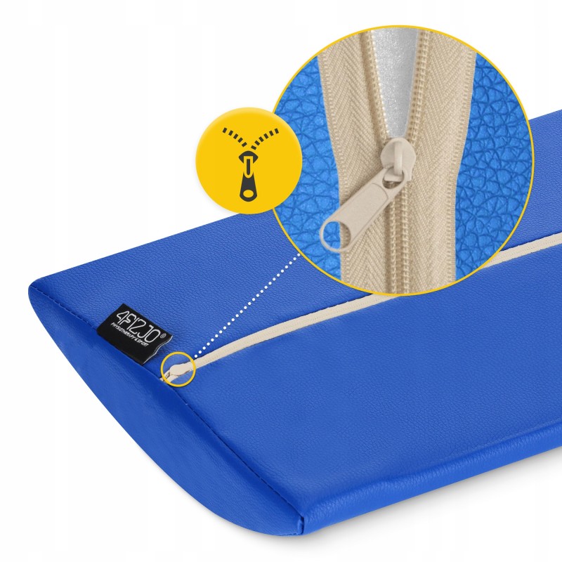 Напіввалик для реабілітації від 4Fizjo виготовлений з комбінації високоякісних матеріалів, в основі яких пінополіуретан. Він стійкий до деформації, довговічний та має середню жорсткість, забезпечуючи оптимальне положення тіла. Накидка-чохол на блискавці виконана з ПВХ матеріалу, завдяки цьому валик стійкий до забруднень, наприклад, від масажних масел, його легко чистити та дезінфікувати. Обтічна форма аксесуара ідеально підходить для підтримки плечей та розвантаження поперекового відділу хребта. Він відмінно поєднується з алюмінієвими та дерев'яними масажними столами 4Fizjo.