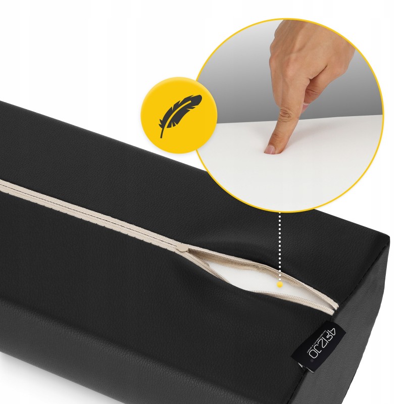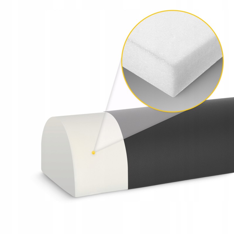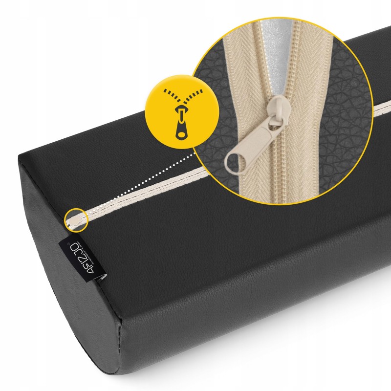 Напіввалик для реабілітації від 4Fizjo виготовлений з комбінації високоякісних матеріалів, в основі яких пінополіуретан. Він стійкий до деформації, довговічний та має середню жорсткість, забезпечуючи оптимальне положення тіла. Накидка-чохол на блискавці виконана з ПВХ матеріалу, завдяки цьому валик стійкий до забруднень, наприклад, від масажних масел, його легко чистити та дезінфікувати. Обтічна форма аксесуара ідеально підходить для підтримки плечей, поперекового відділу хребта і колін. Він відмінно поєднується з алюмінієвими та дерев'яними масажними столами 4Fizjo.