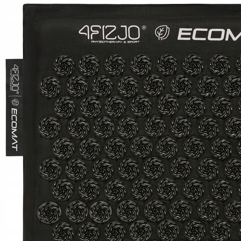 Акупунктурний килимок від 4Fizjo виконаний з преміальних матеріалів: накидка з лляної тканини, наповнювач з кокосового волокна та аплікатори з гіпоалергенного пластику. Форма аплікатора не проста, голки закручуються у вихор, а на їх верхівці розташовані фокусні точки. Дана технологія отримала назву Spinning Spikes. Завдяки цьому, під час легких рухів тіла, шкірна тканина та фасція будуть закручуватись у напрямку вихору на аплікаторі, що забезпечить додаткове розслаблення. Тисячі голок на поверхні килимка стимулюють тканини виділяти ендорфіни, які мають болезаспокійливу дію та приносять полегшення втомленим м'язам. Подушка, що йде у комплекті, наповнена натуральним лушпинням гречки, її можна підкладати під голову або стопи та застосовувати самостійно чи в парі з килимком.