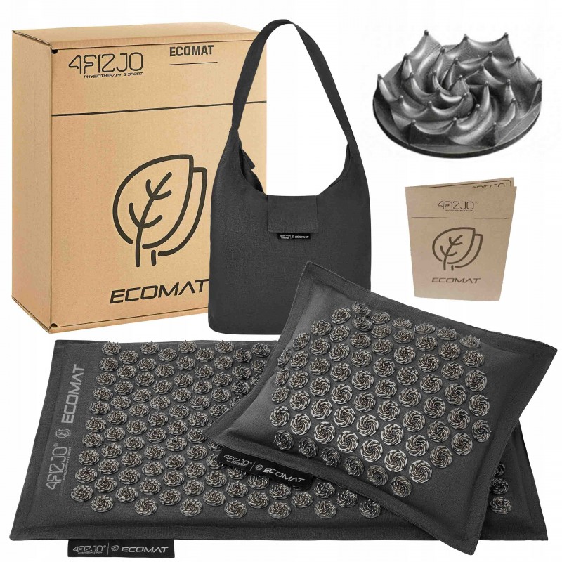 Масажний килимок з подушкою від польського бренду 4Fizjo - це інноваційний продукт, розроблений для забезпечення терапевтичного впливу на різні частини тіла за допомогою акупунктурної техніки. Основна ідея полягає в тому, щоб стимулювати активні точки на шкірі, це покращує кровообіг та розслабляє нервову систему.