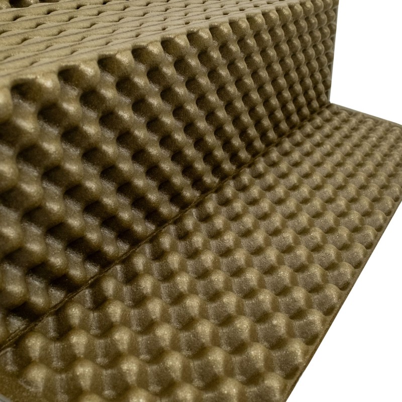 - комірчаста структура килимка дозволяє максимально компактно його складати, зменшити об'єм при транспортуванні, утримувати тепло і підвищити комфорт без збільшення ваги