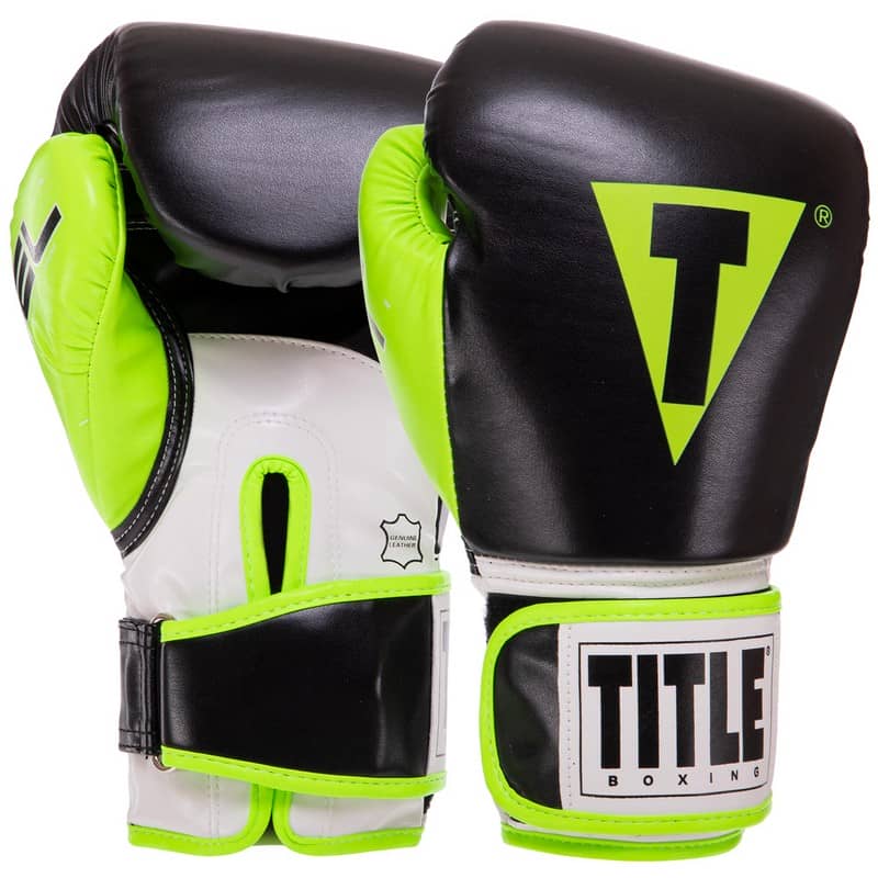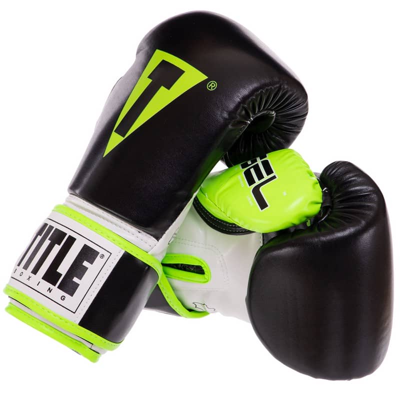 Боксерські рукавиці Title 12 унцій, чорний-салатовий, код: BO-3780_12LG