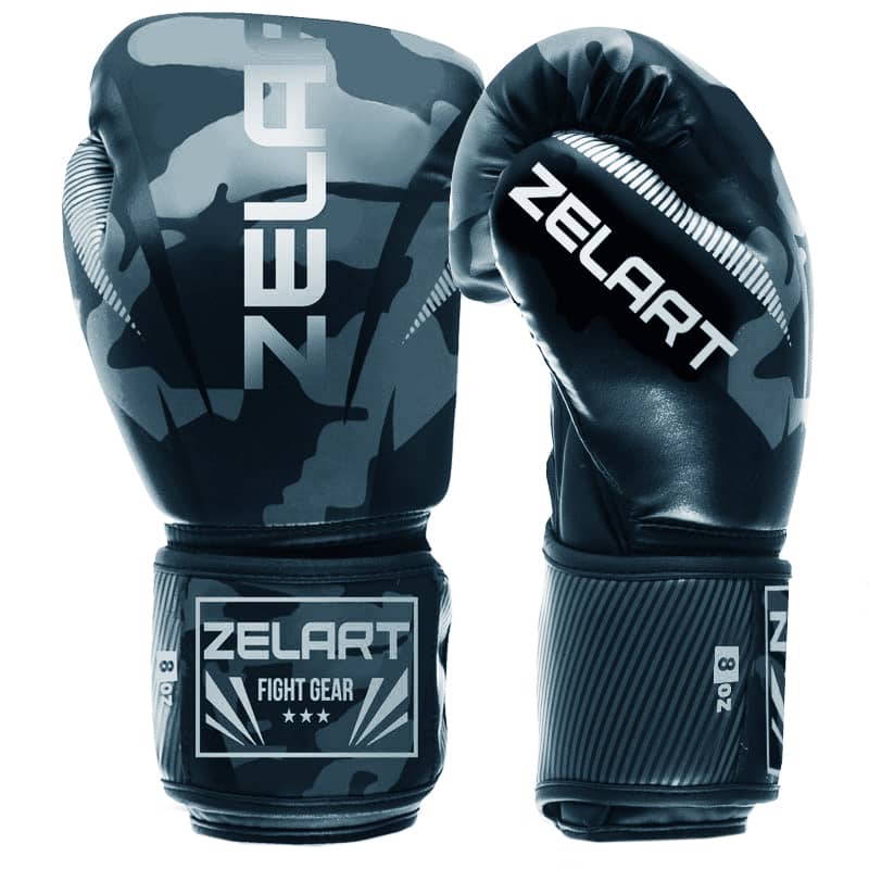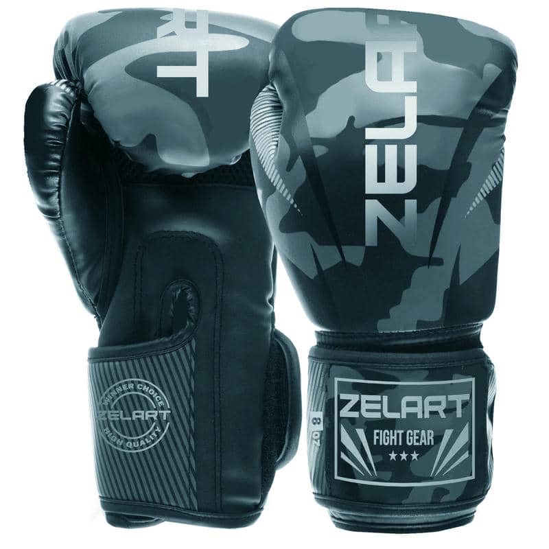 Рукавички боксерські Zelart 14 унції, камуфляж сірий-срібло, код: BO-0870_14GRKS