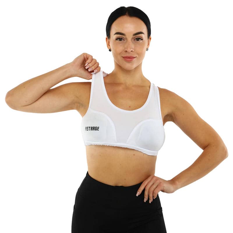 Захист грудей є високоякісним спортивним аксесуаром, який ефективно захищає від ударів і травм під час занять бойовими мистецтвами. Найважливішим елементом цього захисту є знімні протектори, які надійно розподіляють ударне навантаження, а й забезпечують максимальний комфорт під час занять. Їх легко адаптувати під індивідуальні потреби спортсменки: протектори можуть бути зняті або замінені, що дає змогу оптимізувати захист залежно від інтенсивності тренувань або типу змагань.