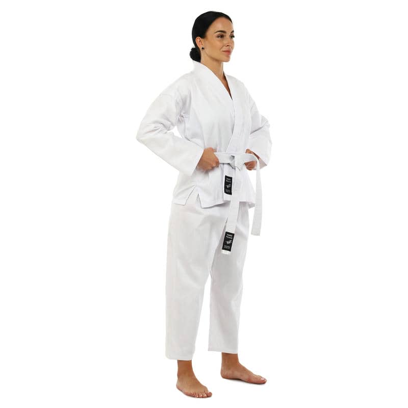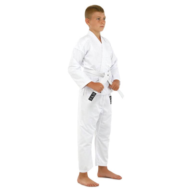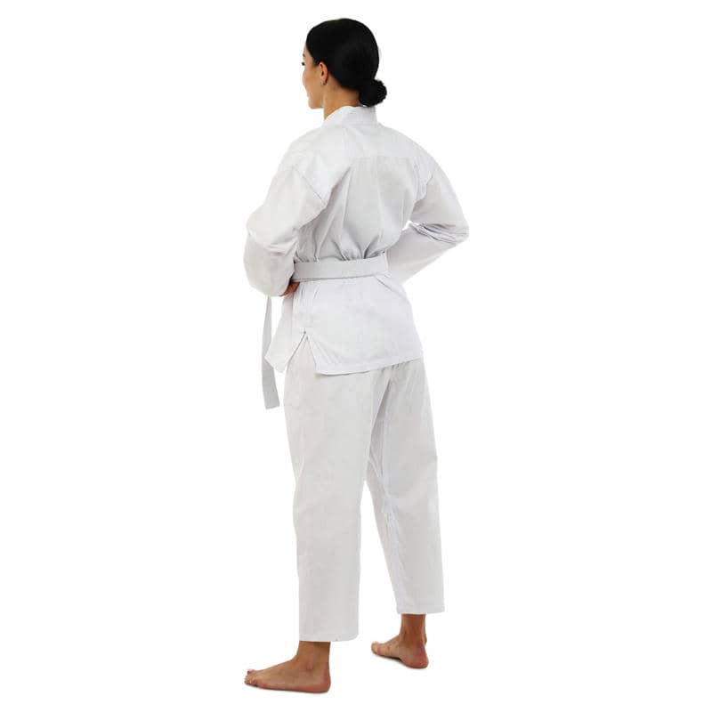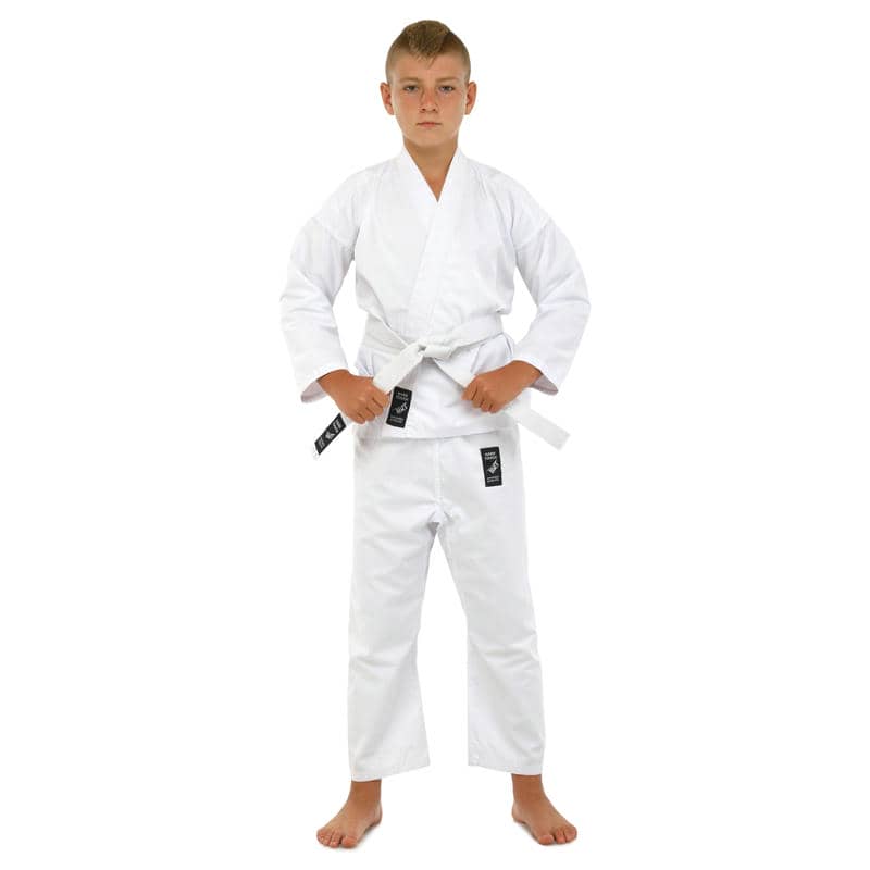 Комплект кімоно складається з трьох елементів: куртки-кімоно, штанів та пояса. Куртка має традиційний крій та довгі рукави, що забезпечують свободу рухів та комфорт під час виконання різних технік карате. Штани оснащені еластичним поясом для надійної посадки на талії, що сприяє зручності та впевненості у кожному русі.