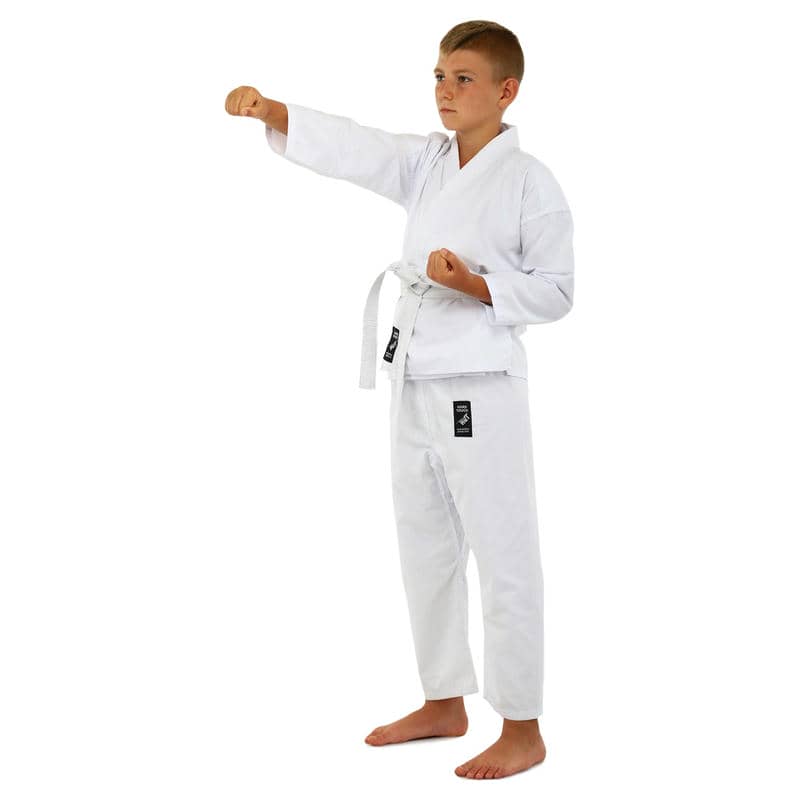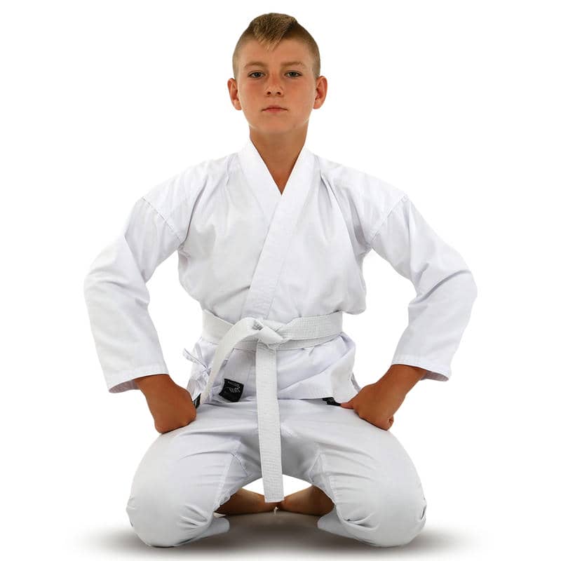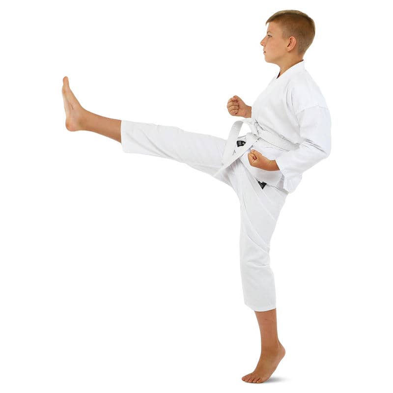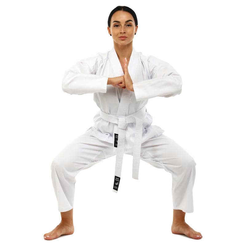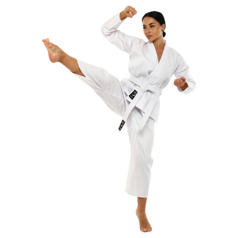 Комплект кімоно складається з трьох елементів: куртки-кімоно, штанів та пояса. Куртка має традиційний крій та довгі рукави, що забезпечують свободу рухів та комфорт під час виконання різних технік карате. Штани оснащені еластичним поясом для надійної посадки на талії, що сприяє зручності та впевненості у кожному русі.