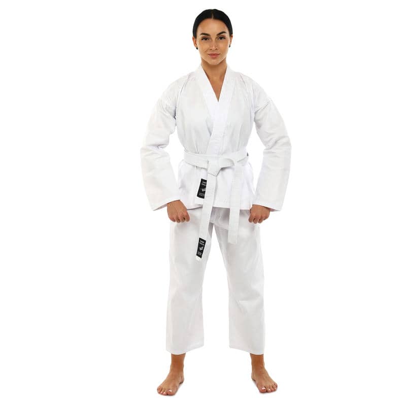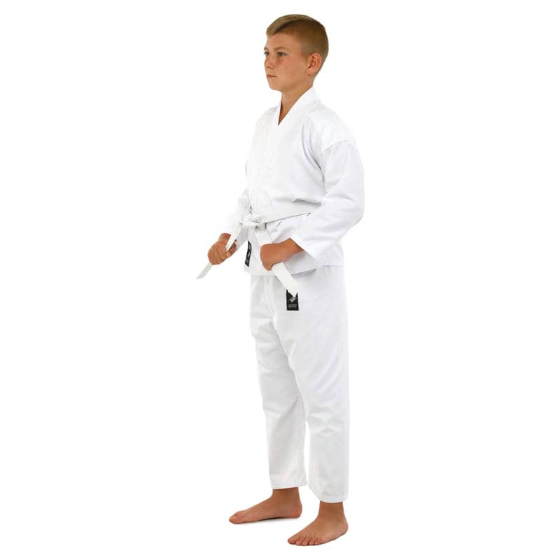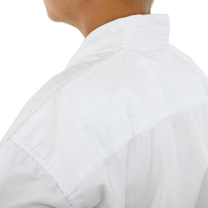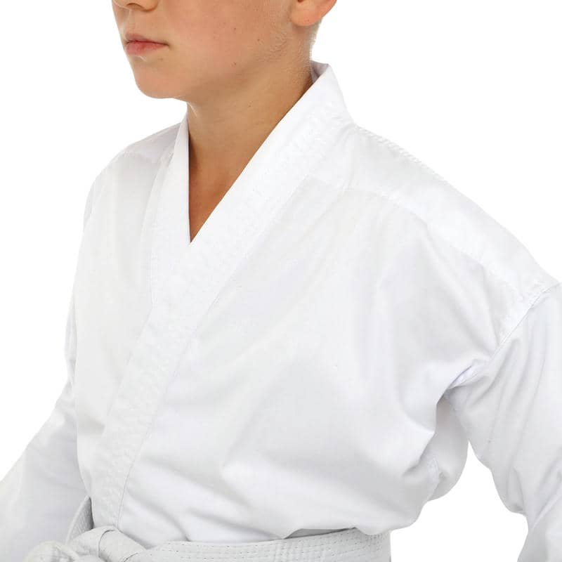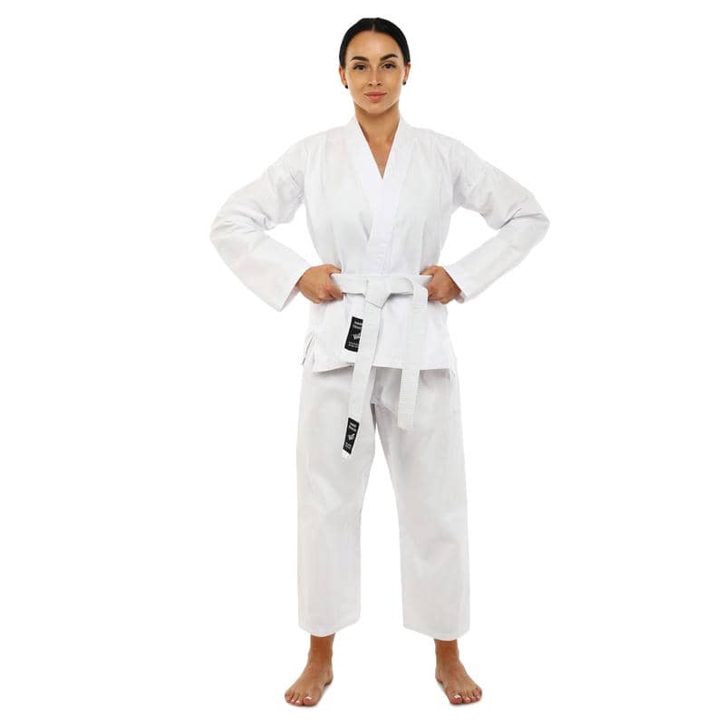 Комплект кімоно складається з трьох елементів: куртки-кімоно, штанів та пояса. Куртка має традиційний крій та довгі рукави, що забезпечують свободу рухів та комфорт під час виконання різних технік карате. Штани оснащені еластичним поясом для надійної посадки на талії, що сприяє зручності та впевненості у кожному русі.