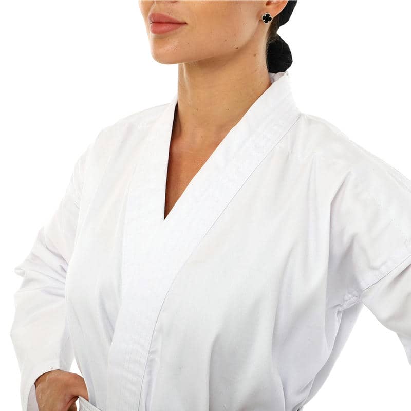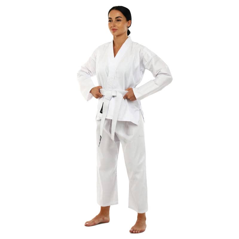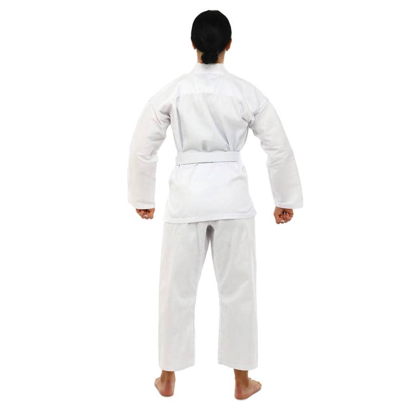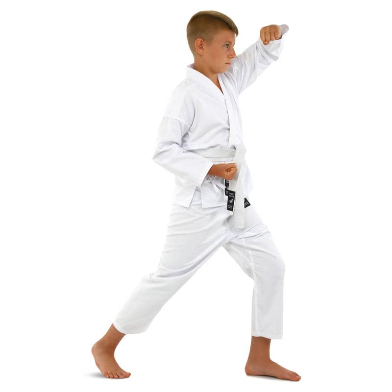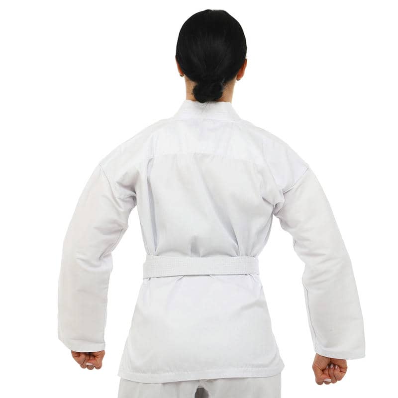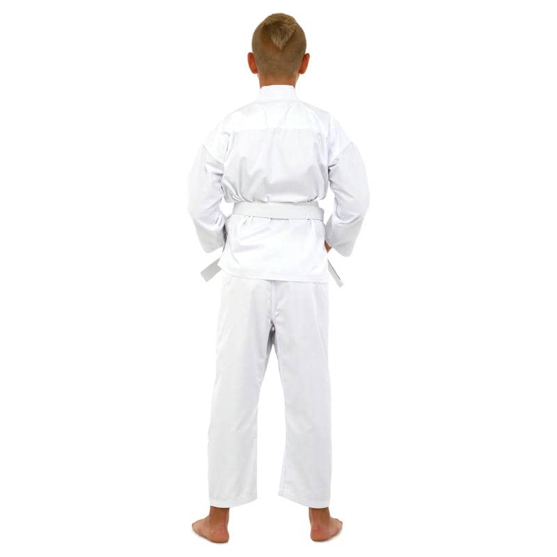 Комплект кімоно складається з трьох елементів: куртки-кімоно, штанів та пояса. Куртка має традиційний крій та довгі рукави, що забезпечують свободу рухів та комфорт під час виконання різних технік карате. Штани оснащені еластичним поясом для надійної посадки на талії, що сприяє зручності та впевненості у кожному русі.