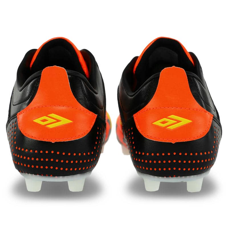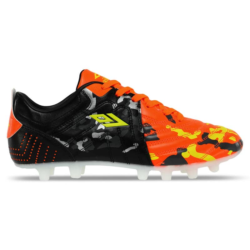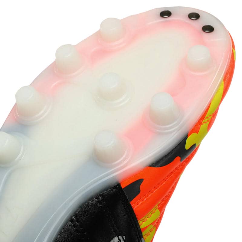 Підошва виконана з термополіуретану (TPU), який надає відмінну гнучкість та амортизацію. Матеріали відомий своєю міцністю та стійкістю до зносу, що особливо важливо для футбольних бутс, що зазнають значних навантажень. Підошва має продуману конструкцію шипів, які рівномірно розподілені по всій поверхні. Це сприяє надійному зчепленню з натуральним газоном та відмінною стійкістю на трав'яних покриттях. Шипи розміщені у стратегічно важливих точках для забезпечення оптимального зчеплення та мінімізації ризику ковзання, що дозволяє гравцям впевнено виконувати різкі повороти та швидкі рухи. Фіксується модель за допомогою шнурків, що дозволяє індивідуально підлаштовувати їх під форму стопи.