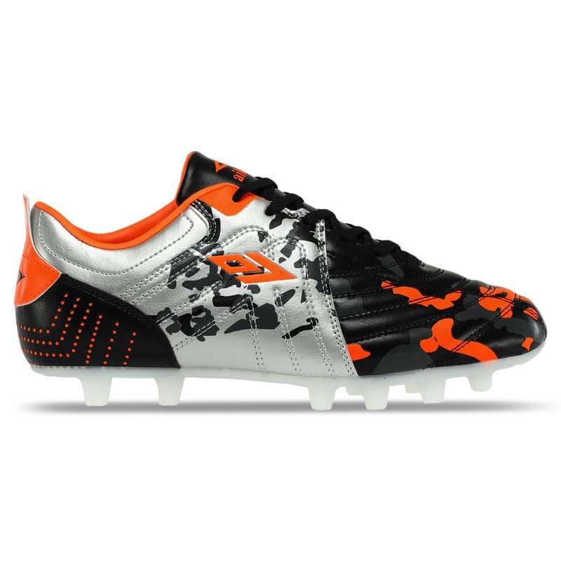 Підошва виконана з термополіуретану (TPU), який надає відмінну гнучкість та амортизацію. Матеріали відомий своєю міцністю та стійкістю до зносу, що особливо важливо для футбольних бутс, що зазнають значних навантажень. Підошва має продуману конструкцію шипів, які рівномірно розподілені по всій поверхні. Це сприяє надійному зчепленню з натуральним газоном та відмінною стійкістю на трав'яних покриттях. Шипи розміщені у стратегічно важливих точках для забезпечення оптимального зчеплення та мінімізації ризику ковзання, що дозволяє гравцям впевнено виконувати різкі повороти та швидкі рухи. Фіксується модель за допомогою шнурків, що дозволяє індивідуально підлаштовувати їх під форму стопи.