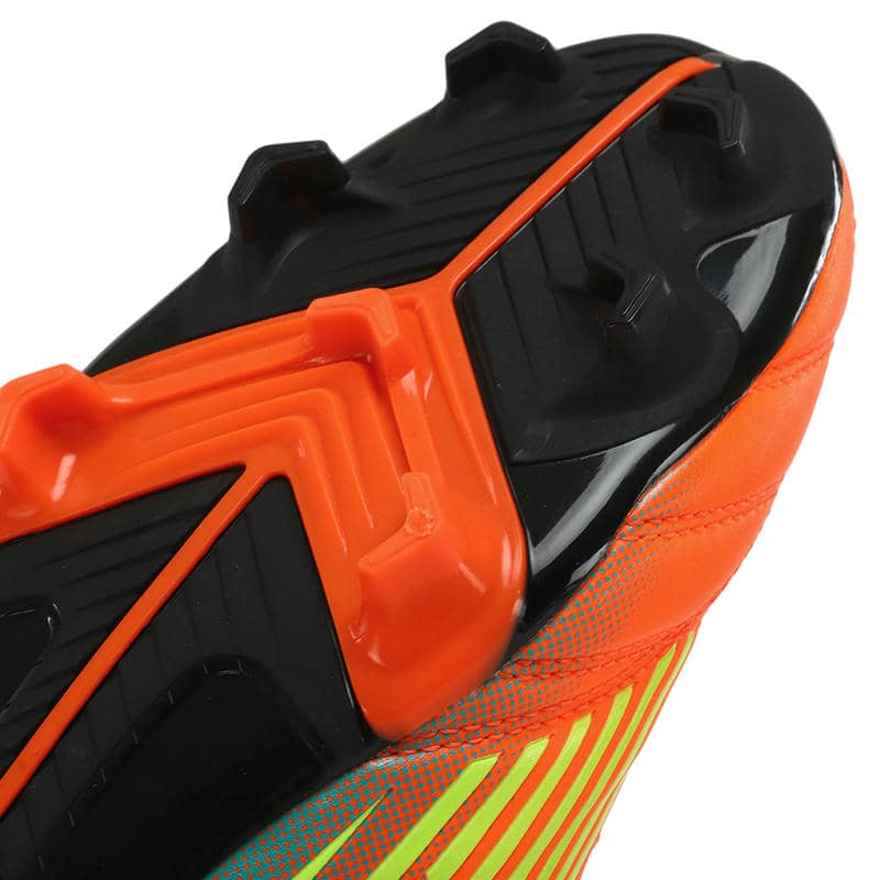 Підошва виконана з термополіуретану (TPU), який надає відмінну гнучкість та амортизацію. Матеріали відомий своєю міцністю та стійкістю до зносу, що особливо важливо для футбольних бутс, що зазнають значних навантажень. Підошва має продуману конструкцію шипів, які рівномірно розподілені по всій поверхні. Це сприяє надійному зчепленню з натуральним газоном та відмінною стійкістю на трав'яних покриттях. Шипи розміщені у стратегічно важливих точках для забезпечення оптимального зчеплення та мінімізації ризику ковзання, що дозволяє гравцям впевнено виконувати різкі повороти та швидкі рухи. Фіксується модель за допомогою шнурків, що дозволяє індивідуально підлаштовувати їх під форму стопи.