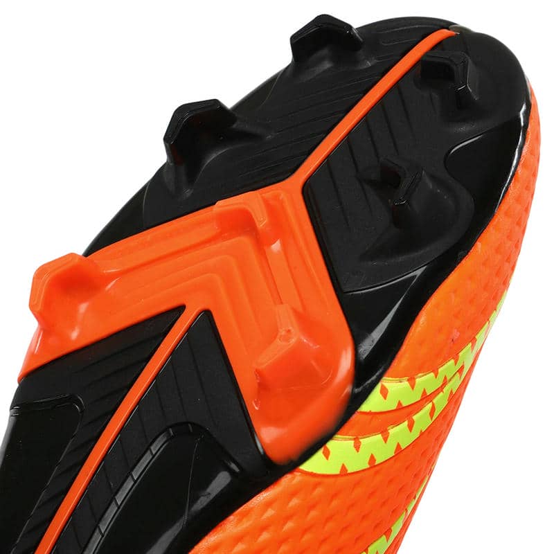 Підошва з термополіуретану (TPU) відрізняється високою міцністю і пружністю, що сприяє відмінному зчепленню з натуральним газоном і запобігає ковзанню. Конструкція підошви включає стратегічно розташовані шипи, які покращують зчеплення та маневреність. Ці шипи розміщені так, щоб забезпечити рівномірний розподіл навантаження та підтримувати стабільність при різких поворотах та зміні напрямку. Це робить бутси особливо зручними при виконанні швидких та динамічних рухів на полі.