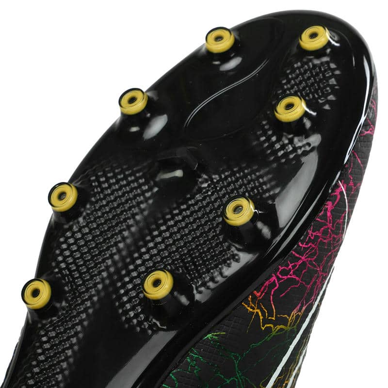 Підошва моделі виконана з термополіуретану (TPU) з шипами, що робить бутси стійкими та надійними на натуральному газоні. TPU – це міцний, гнучкий та легкий матеріал, який дозволяє бутсам ефективно справлятися з навантаженнями на полі. Шипи, розміщені на підошві, сприяють оптимальному зчепленню з газоном, що дозволяє гравцю легко прискорюватися, гальмувати та змінювати напрямок руху, мінімізуючи ризик підскальзування.
