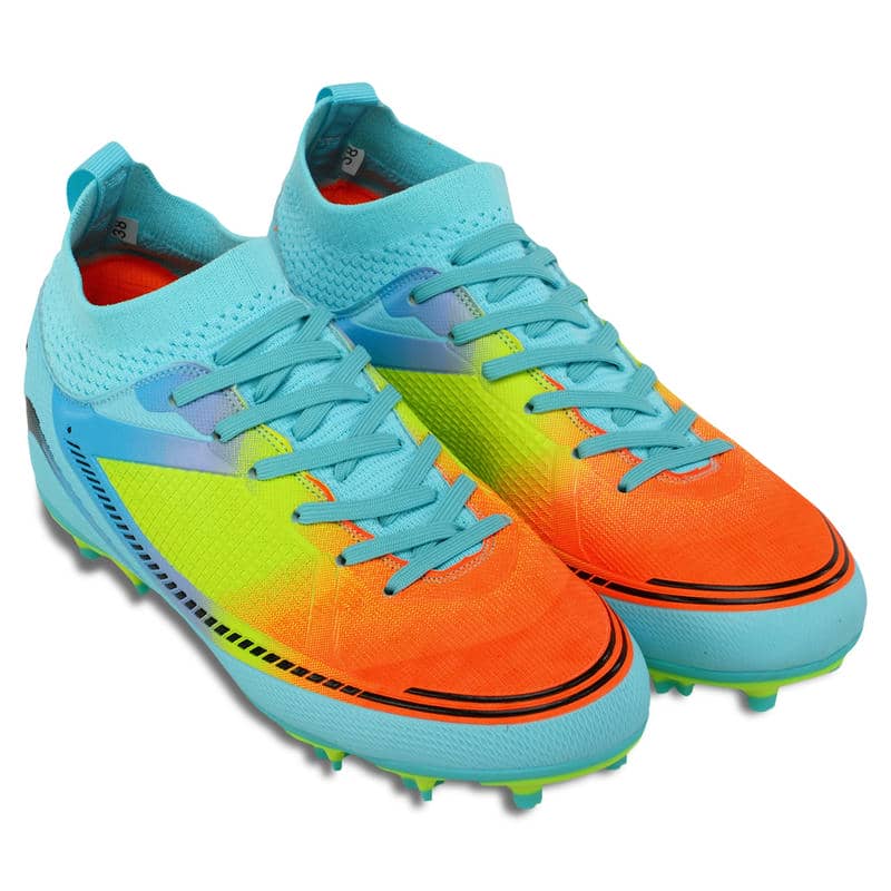 Модель оснащена шкарпеткою в області гомілкостопу, що надає додаткову фіксацію та підтримку гомілковостопного суглоба. Це особливо важливо при швидкому пересуванні по полю та різких змін напрямку. Підошва з термополіуретану (TPU) оснащена шипами, які забезпечують відмінне зчеплення з поверхнею. TPU відрізняється легкістю та міцністю, що сприяє довговічності та стійкості до стирання. Шипи розташовані так, щоб гарантувати максимальне зчеплення під час руху в будь-яких напрямках, що особливо важливо для футбольних маневрів. Також ця модель передбачає зручну шнурівку, що дозволяє легко регулювати щільність посадки бутсів по нозі.