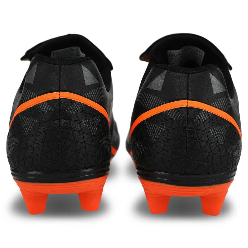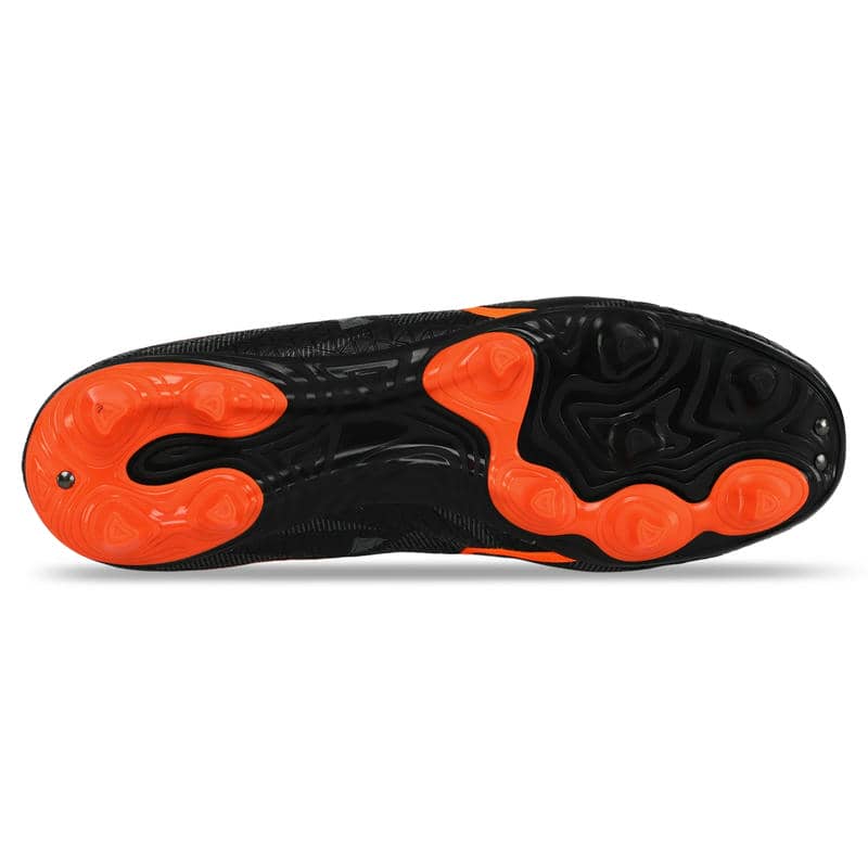 Підошва виконана з термополіуретану (TPU), який надає відмінну гнучкість та амортизацію. Матеріали відомий своєю міцністю та стійкістю до зносу, що особливо важливо для футбольних бутс, що зазнають значних навантажень. Підошва має продуману конструкцію шипів, які рівномірно розподілені по всій поверхні. Це сприяє надійному зчепленню з натуральним газоном та відмінною стійкістю на трав'яних покриттях. Шипи розміщені у стратегічно важливих точках для забезпечення оптимального зчеплення та мінімізації ризику ковзання, що дозволяє гравцям впевнено виконувати різкі повороти та швидкі рухи. Фіксується модель за допомогою шнурків, що дозволяє індивідуально підлаштовувати їх під форму стопи.