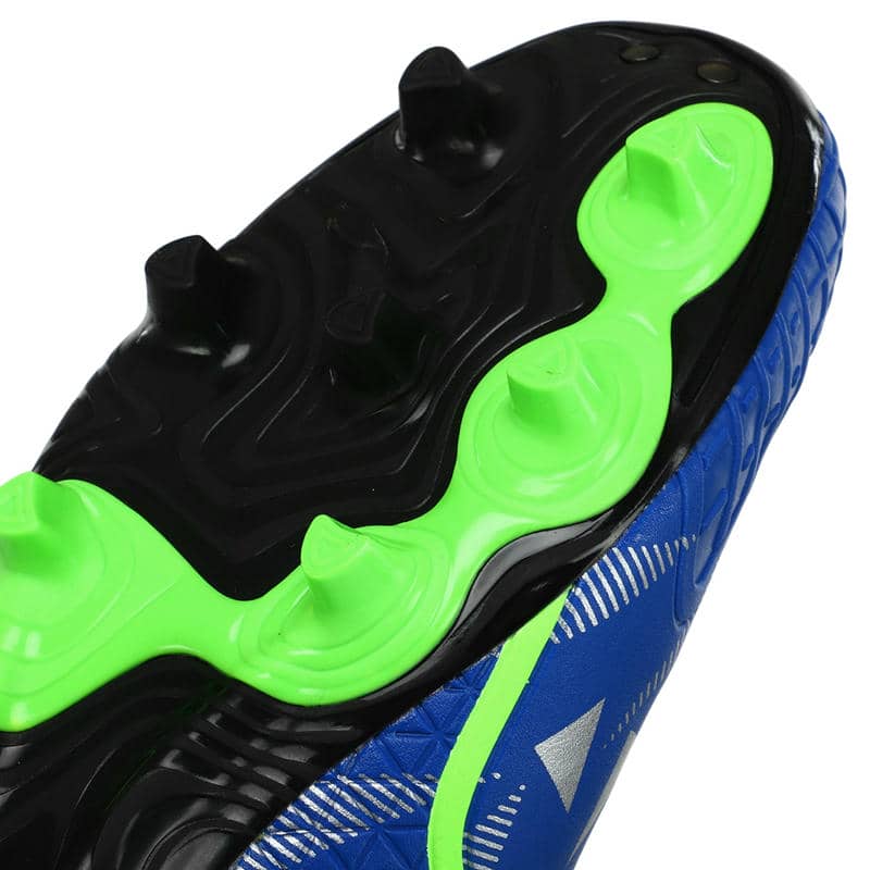 Підошва виконана з термополіуретану (TPU), який надає відмінну гнучкість та амортизацію. Матеріали відомий своєю міцністю та стійкістю до зносу, що особливо важливо для футбольних бутс, що зазнають значних навантажень. Підошва має продуману конструкцію шипів, які рівномірно розподілені по всій поверхні. Це сприяє надійному зчепленню з натуральним газоном та відмінною стійкістю на трав'яних покриттях. Шипи розміщені у стратегічно важливих точках для забезпечення оптимального зчеплення та мінімізації ризику ковзання, що дозволяє гравцям впевнено виконувати різкі повороти та швидкі рухи. Фіксується модель за допомогою шнурків, що дозволяє індивідуально підлаштовувати їх під форму стопи.
