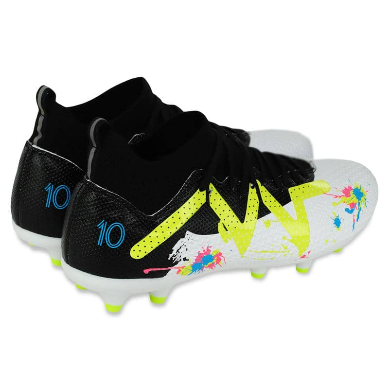 Особливістю даної моделі є наявність шкарпетки, який надає додатковий захист гомілкостопа. Це особливо важливо при виконанні ударів по м'ячу або зіткненні з суперником, коли передня частина ноги зазнає значних навантажень. Шкарпетка допомагає запобігти травмам і робить гру більш комфортною та безпечною. Також футбольні бутси оснащені надійним шнурівкою, що гарантує щільну посадку взуття на нозі.