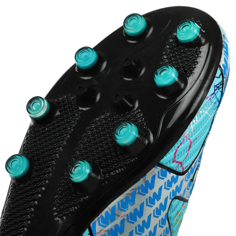 Підошва виготовлена з термополіуретану (TPU), міцного та зносостійкого матеріалу, який забезпечує відмінне зчеплення з натуральним газоном. На підошві розташовані шипи, які надають максимальне зчеплення з поверхнею поля, дозволяючи юному футболісту швидко маневрувати та різко змінювати напрямок руху.