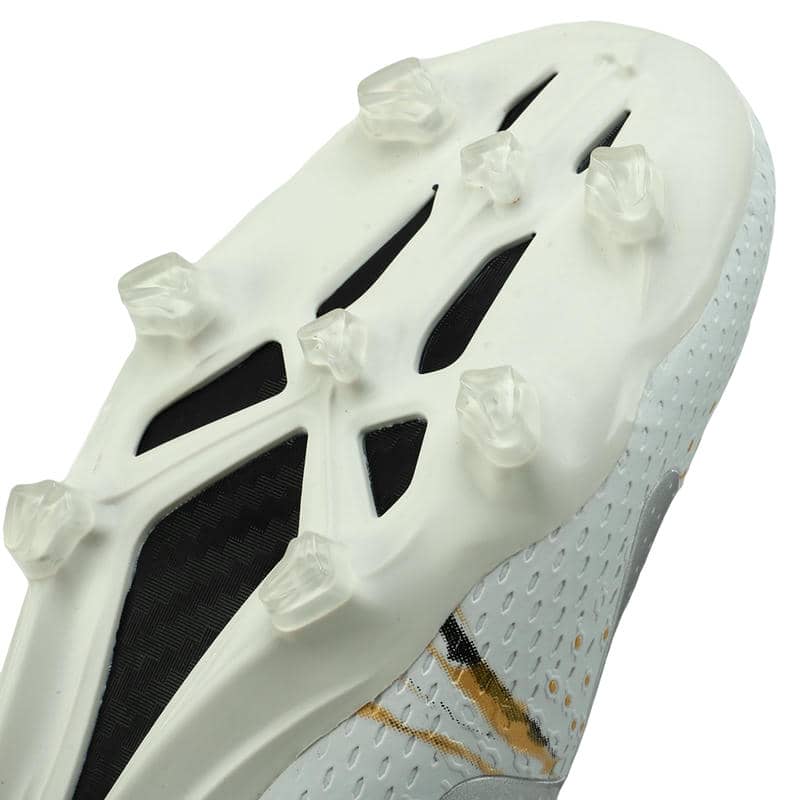 Підошва виготовлена з термополіуретану (TPU), міцного та зносостійкого матеріалу, який забезпечує відмінне зчеплення з натуральним газоном. На підошві розташовані шипи, які надають максимальне зчеплення з поверхнею поля, дозволяючи юному футболісту швидко маневрувати та різко змінювати напрямок руху.