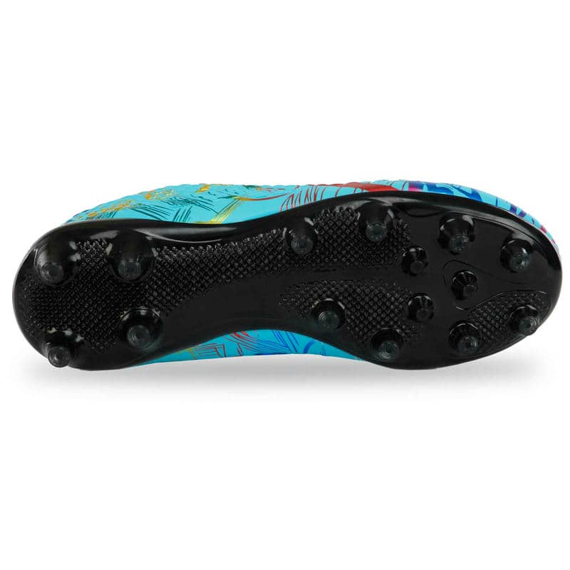 Підошва виконана з термополіуретану (TPU) і оснащена шипами, спеціально призначеними для гри на натуральному газоні. TPU – це матеріал, який поєднує в собі легкість та міцність, що робить підошву стійкою до стирання та впливу навколишнього середовища, одночасно гарантуючи гарне зчеплення з поверхнею. Шипи на підошві гарантують надійне утримання на траві, запобігаючи ковзанню та допомагаючи гравцям зберігати стійкість при швидких маневрах та різких поворотах.