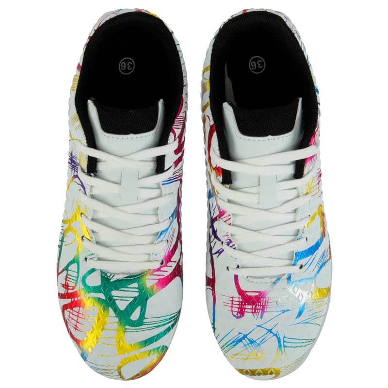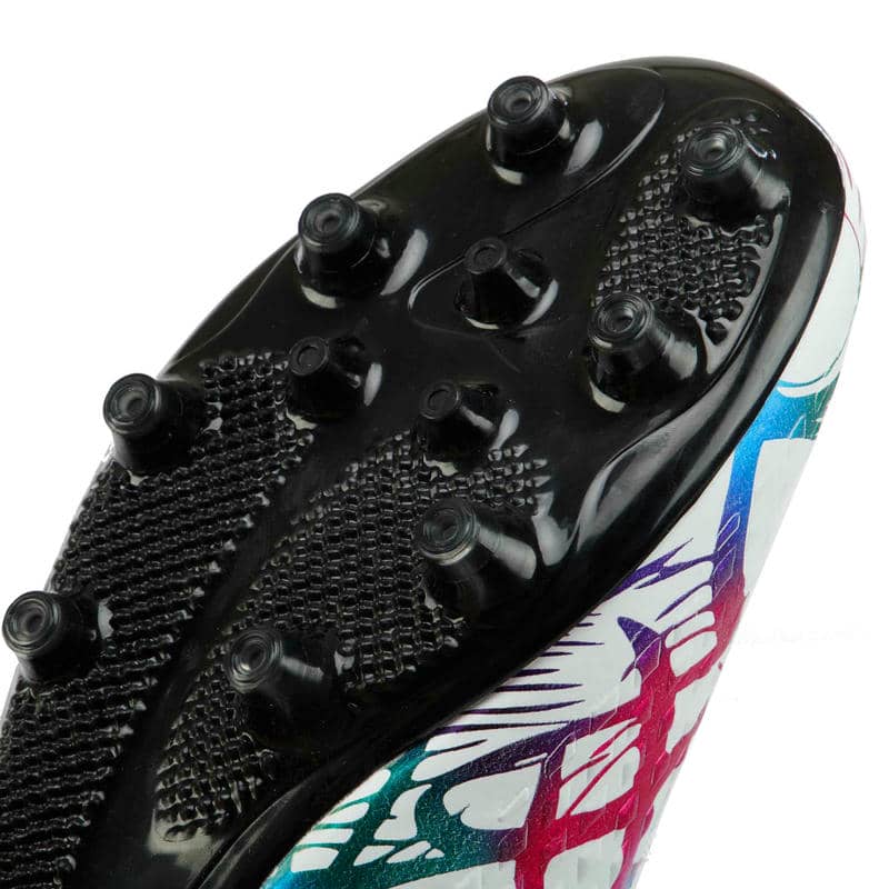 Підошва виконана з термополіуретану (TPU) і оснащена шипами, спеціально призначеними для гри на натуральному газоні. TPU – це матеріал, який поєднує в собі легкість та міцність, що робить підошву стійкою до стирання та впливу навколишнього середовища, одночасно гарантуючи гарне зчеплення з поверхнею. Шипи на підошві гарантують надійне утримання на траві, запобігаючи ковзанню та допомагаючи гравцям зберігати стійкість при швидких маневрах та різких поворотах.