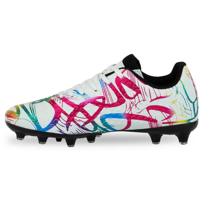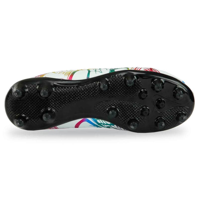 Підошва виконана з термополіуретану (TPU) і оснащена шипами, спеціально призначеними для гри на натуральному газоні. TPU – це матеріал, який поєднує в собі легкість та міцність, що робить підошву стійкою до стирання та впливу навколишнього середовища, одночасно гарантуючи гарне зчеплення з поверхнею. Шипи на підошві гарантують надійне утримання на траві, запобігаючи ковзанню та допомагаючи гравцям зберігати стійкість при швидких маневрах та різких поворотах.