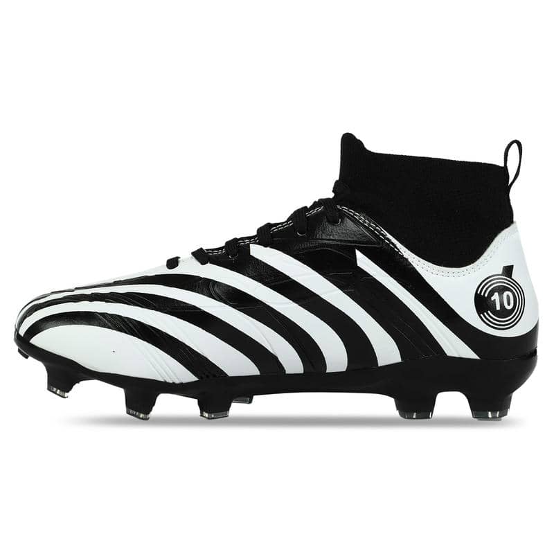 Підошва виконана з термополіуретану (TPU) і оснащена шипами, спеціально призначеними для гри на натуральному газоні. TPU – це матеріал, який поєднує в собі легкість та міцність, що робить підошву стійкою до стирання та впливу навколишнього середовища, одночасно гарантуючи гарне зчеплення з поверхнею. Шипи на підошві гарантують надійне утримання на траві, запобігаючи ковзанню та допомагаючи гравцям зберігати стійкість при швидких маневрах та різких поворотах.