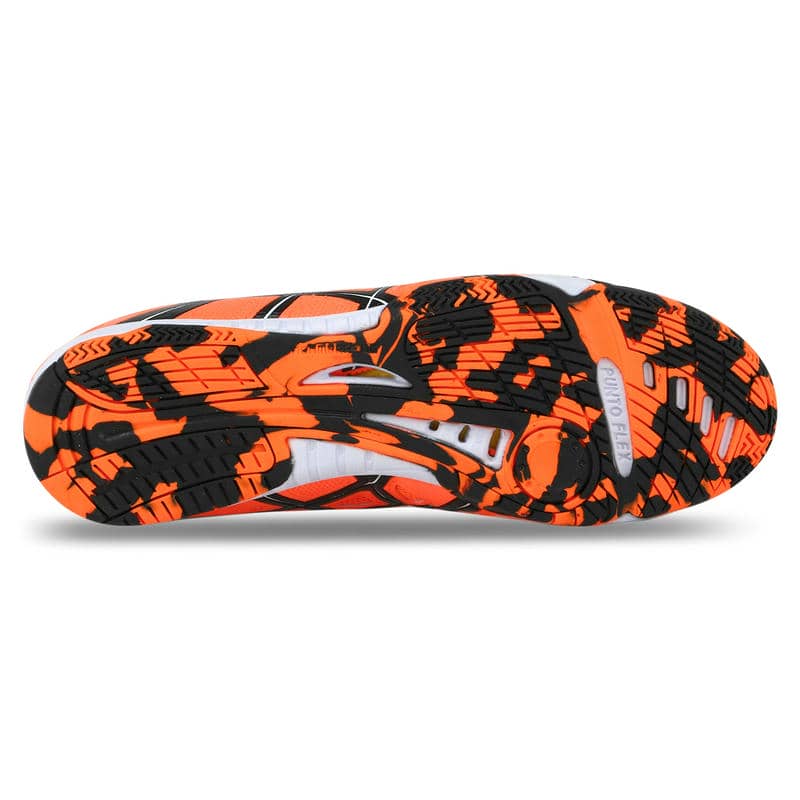 Ця модель має продуману конструкцію, яка гарантує щільну і комфортну посадку по нозі, не обмежуючи руху, але при цьому надійно фіксуючи стопу. Спеціальна анатомічна форма знижує навантаження на суглоби та м'язи, що особливо важливо при тривалих тренуваннях та іграх. Високоякісна гумова підошва (RB) розроблена з урахуванням потреб гравців, надаючи відмінне зчеплення з поверхнею, що покращує маневреність та стабільність під час швидких ривків та зміни напряму. Гума також стійка до зношування, що робить цю модель довговічною та надійною для частого використання.