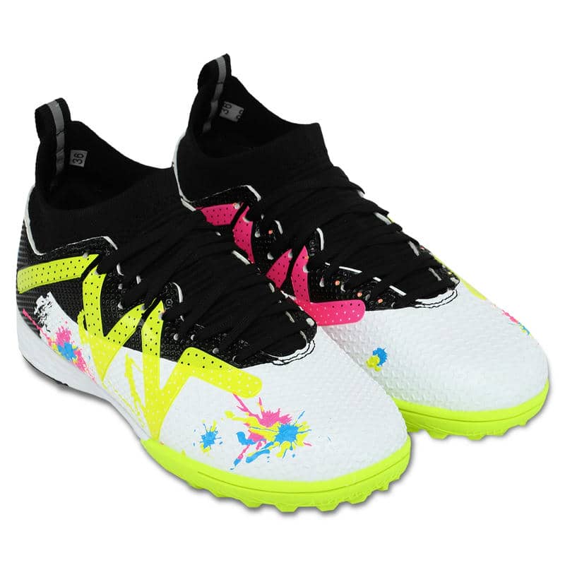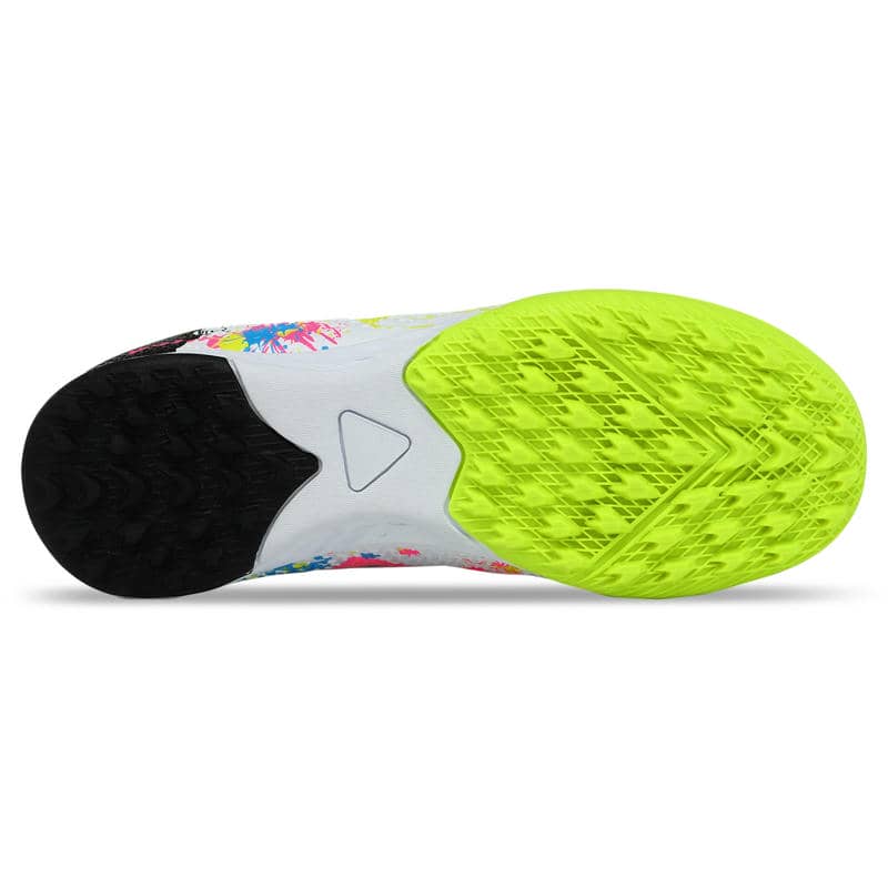 Підошва виготовлена з гуми (RB) з шипами, що робить їх незамінними на ґрунтових полях та ковроліні. Гумова підошва гарантує відмінне зчеплення з поверхнею, знижуючи ймовірність ковзання навіть на мокрому або пухкому ґрунті. Шипи, рівномірно розподілені по підошві, сприяють покращенню стабільності та маневреності на полі, дозволяючи гравцеві зберігати контроль над м'ячем та впевненість у кожному русі.