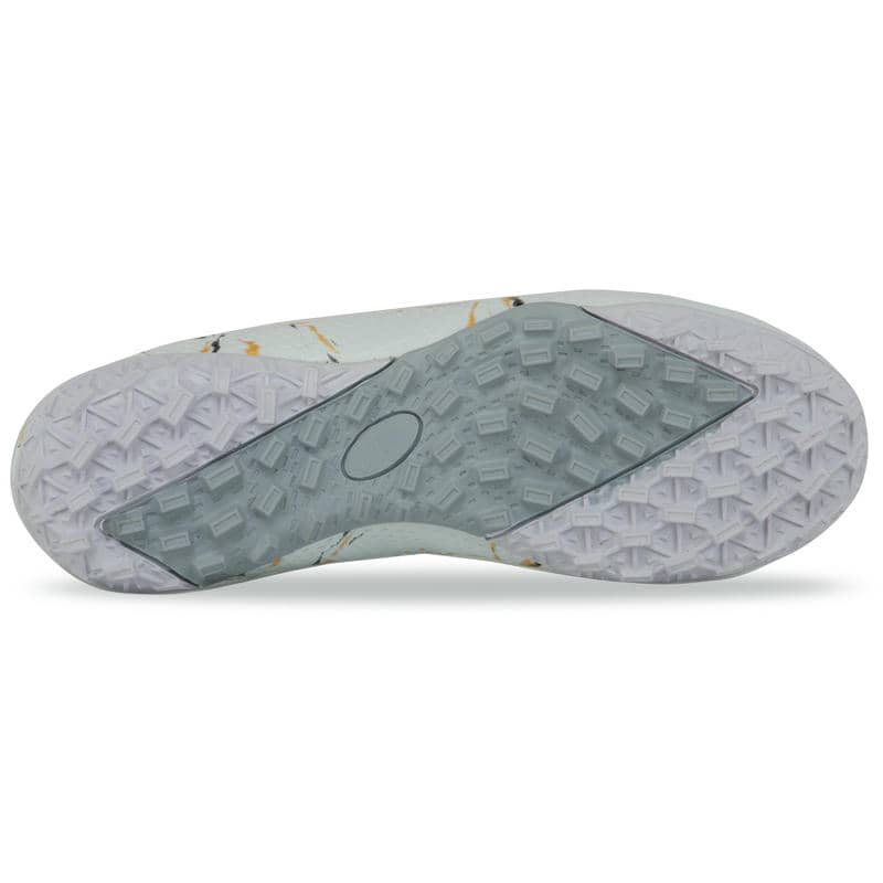 Підошва виготовлена з гуми (RB) з шипами, що робить їх незамінними на ґрунтових полях та ковроліні. Гумова підошва гарантує відмінне зчеплення з поверхнею, знижуючи ймовірність ковзання навіть на мокрому або пухкому ґрунті. Шипи, рівномірно розподілені по підошві, сприяють покращенню стабільності та маневреності на полі, дозволяючи гравцеві зберігати контроль над м'ячем та впевненість у кожному русі.