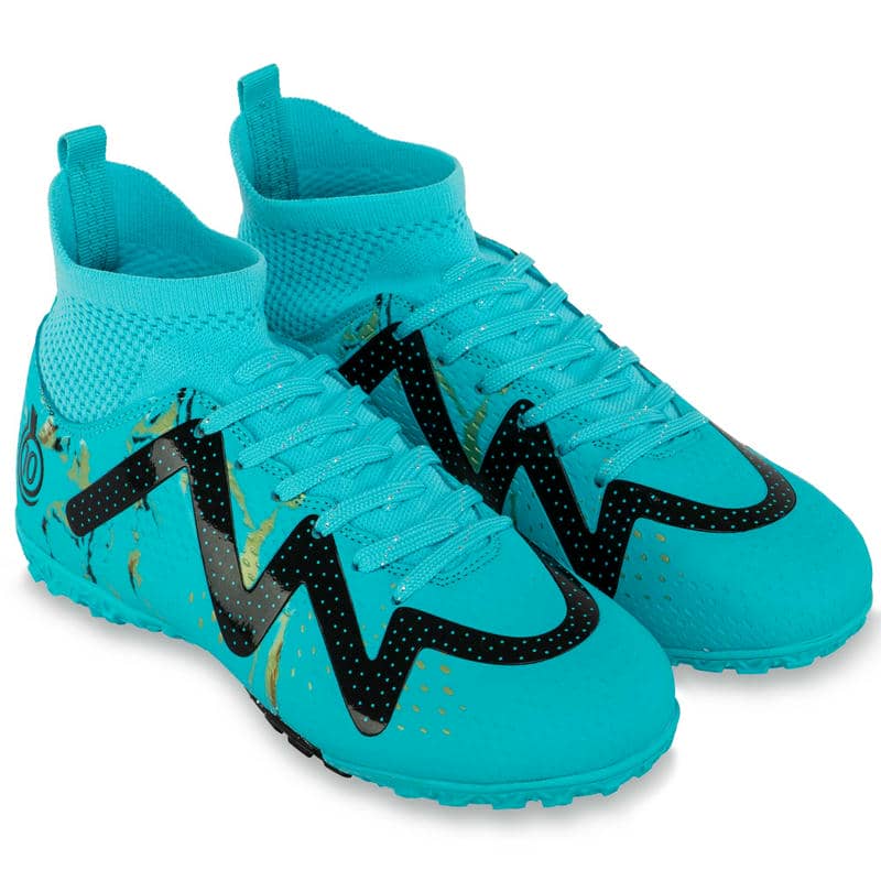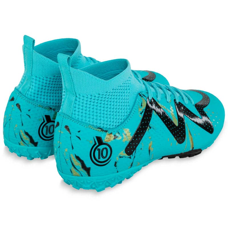 Підошва виготовлена з гуми (RB) з шипами, що робить їх незамінними на ґрунтових полях та ковроліні. Гумова підошва гарантує відмінне зчеплення з поверхнею, знижуючи ймовірність ковзання навіть на мокрому або пухкому ґрунті. Шипи, рівномірно розподілені по підошві, сприяють покращенню стабільності та маневреності на полі, дозволяючи гравцеві зберігати контроль над м'ячем та впевненість у кожному русі.