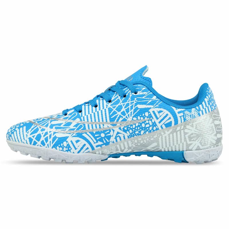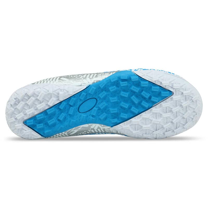 Підошва виконана з гуми (RB) з шипами, що надає чудове зчеплення з поверхнею. Це особливо важливо при грі на ґрунтових полях та ковроліні, де контроль над рухами та маневреність є ключовими факторами успіху. Гумова підошва з шипами не тільки покращує зчеплення, але й забезпечує амортизацію, пом'якшуючи удари при швидкому бігу та зміні напрямку. Це допомагає знизити навантаження на стопи та суглоби, що особливо важливо при інтенсивних тренуваннях.