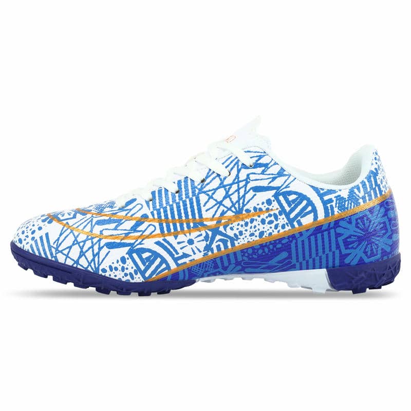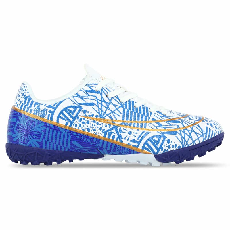Підошва виконана з гуми (RB) з шипами, що надає чудове зчеплення з поверхнею. Це особливо важливо при грі на ґрунтових полях та ковроліні, де контроль над рухами та маневреність є ключовими факторами успіху. Гумова підошва з шипами не тільки покращує зчеплення, але й забезпечує амортизацію, пом'якшуючи удари при швидкому бігу та зміні напрямку. Це допомагає знизити навантаження на стопи та суглоби, що особливо важливо при інтенсивних тренуваннях.