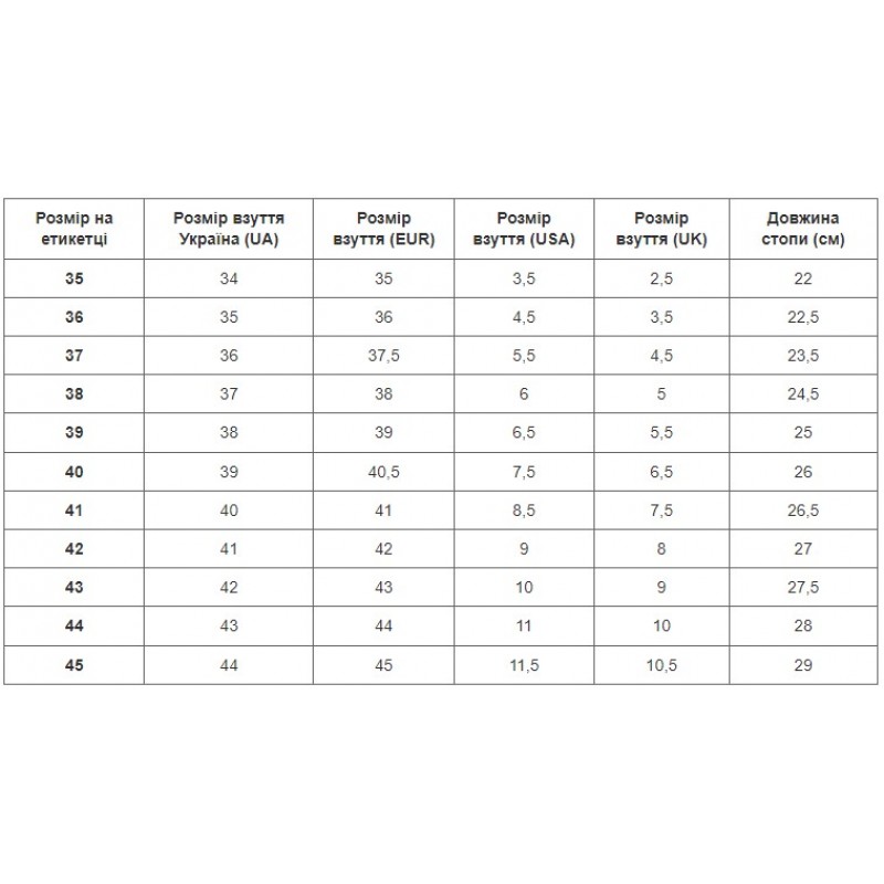 • Представлені в широкому діапазоні розмірів, що дозволяє підібрати ідеальну пару для кожної стопи.
