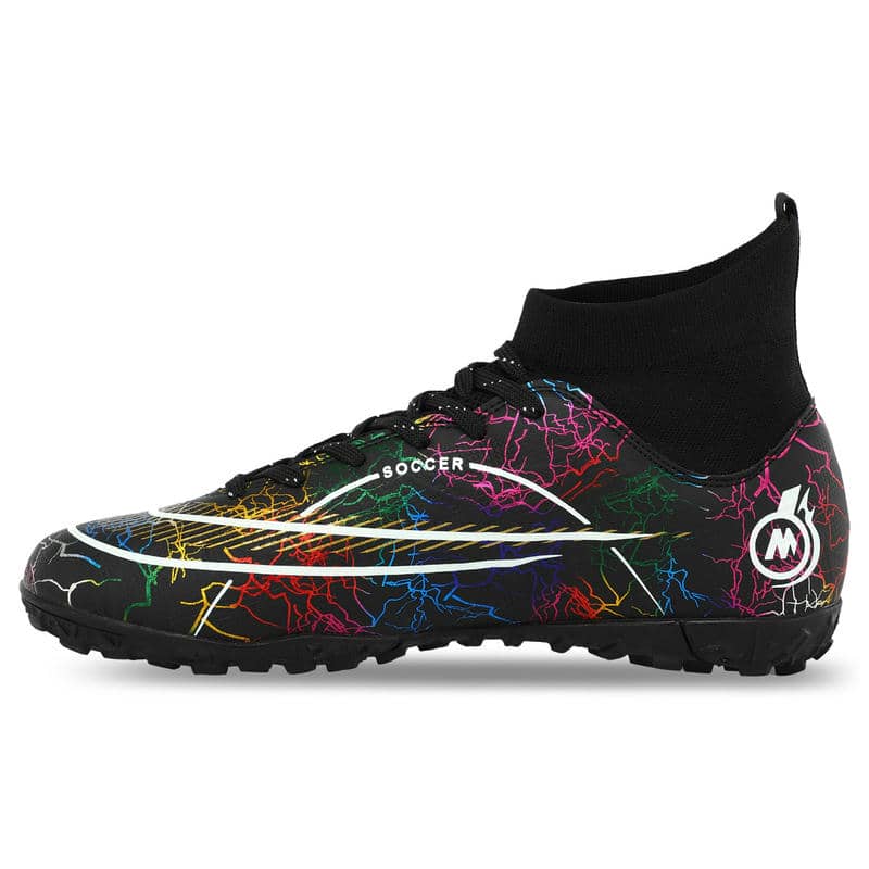 Футбольні сороконіжки SOCCER забезпечують комфорт і захист під час ігор і тренувань. Футбольне взуття виконане в яскравому дизайні з довговічних і практичних матеріалів. Особливістю цієї моделі є наявність носка, який закриває щиколотку. Цей елемент виконує кілька функцій. По-перше, він зігріває суглоб. По-друге, носок забезпечує захист від потрапляння всередину взуття ґрунту або трави. Підошва сороконіжок виготовлена з міцної гуми. Малюнок протектора виконаний таким чином, що забезпечує оптимальне зчеплення з ґрунтовим полем і ковроліном. Верх із поліуретану вирізняється міцністю та стійкістю до впливу вологи. За сороконіжками легко доглядати. Фіксацію на ногах забезпечують шнурки.
