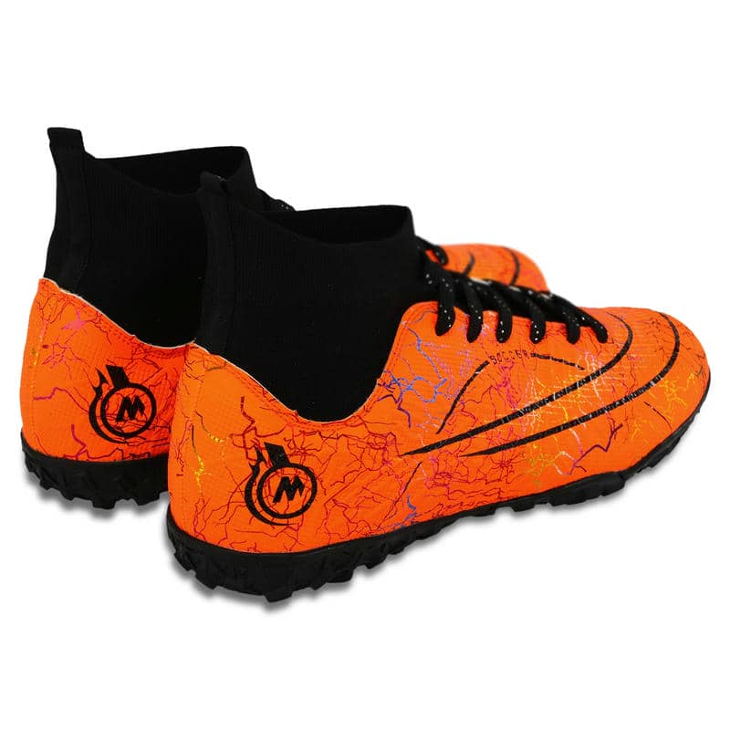 Футбольні сороконіжки SOCCER забезпечують комфорт і захист під час ігор і тренувань. Футбольне взуття виконане в яскравому дизайні з довговічних і практичних матеріалів. Особливістю цієї моделі є наявність носка, який закриває щиколотку. Цей елемент виконує кілька функцій. По-перше, він зігріває суглоб. По-друге, носок забезпечує захист від потрапляння всередину взуття ґрунту або трави. Підошва сороконіжок виготовлена з міцної гуми. Малюнок протектора виконаний таким чином, що забезпечує оптимальне зчеплення з ґрунтовим полем і ковроліном. Верх із поліуретану вирізняється міцністю та стійкістю до впливу вологи. За сороконіжками легко доглядати. Фіксацію на ногах забезпечують шнурки.
