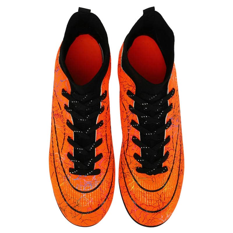 Футбольні сороконіжки SOCCER забезпечують комфорт і захист під час ігор і тренувань. Футбольне взуття виконане в яскравому дизайні з довговічних і практичних матеріалів. Особливістю цієї моделі є наявність носка, який закриває щиколотку. Цей елемент виконує кілька функцій. По-перше, він зігріває суглоб. По-друге, носок забезпечує захист від потрапляння всередину взуття ґрунту або трави. Підошва сороконіжок виготовлена з міцної гуми. Малюнок протектора виконаний таким чином, що забезпечує оптимальне зчеплення з ґрунтовим полем і ковроліном. Верх із поліуретану вирізняється міцністю та стійкістю до впливу вологи. За сороконіжками легко доглядати. Фіксацію на ногах забезпечують шнурки.