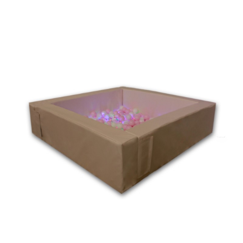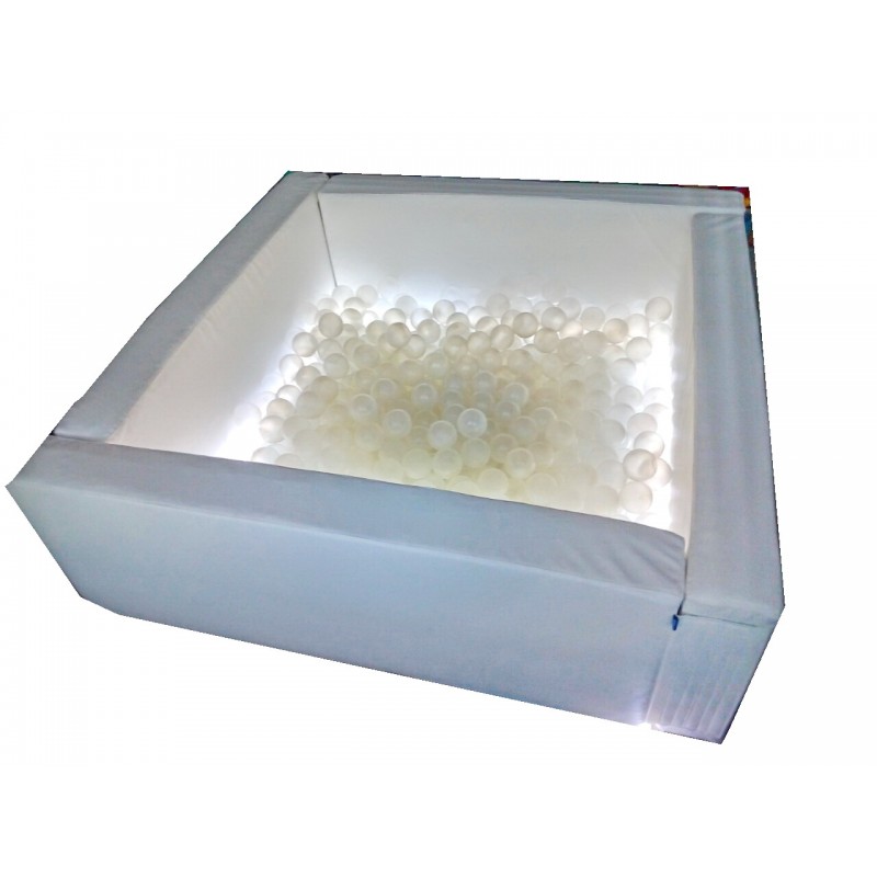 Опис: сухий басейн для дитячих рухливих ігор. У нього можна насипати пластикові кульки різного діаметру, м'які іграшки, солодощі тощо. Їх сприятливий сенсорний вплив на психологічний, емоційний і фізичний розвиток дітей доведено не одним поколінням педіатрів і невропатологів. Наповнювач сухого басейну надає масажну дію, яскраві деталі сприяють вивченню кольорів і форм. Часто використовується в реабілітаційній роботі дітей з відставанням у розвитку або неврологічними патологіями.