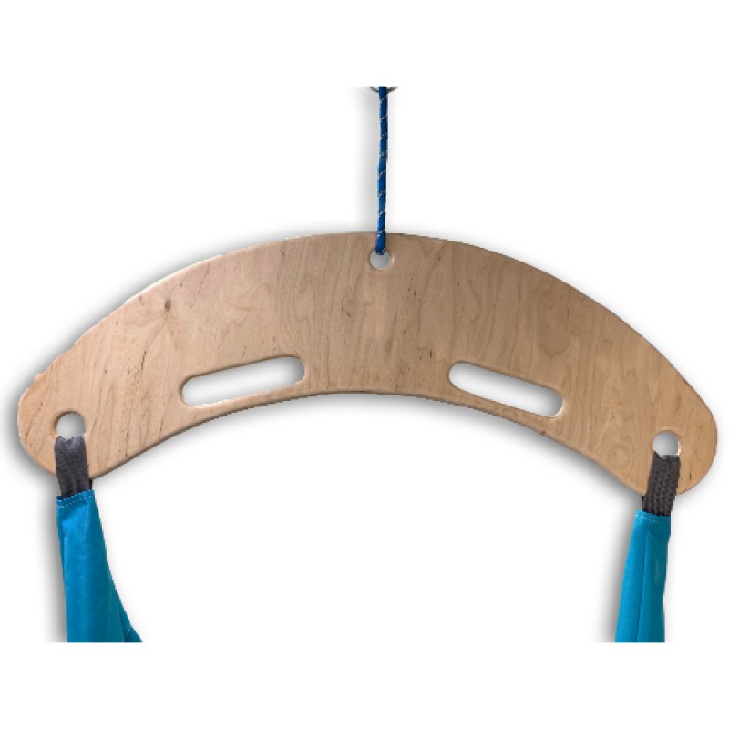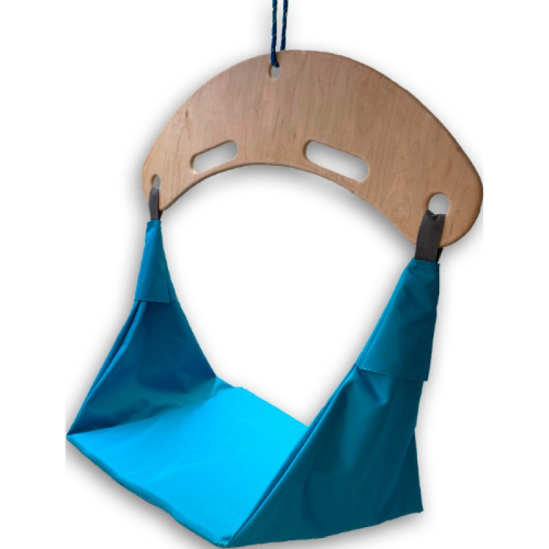 Сенсорні гойдалки Навісна система для ігор і усамітнення. На гойдалці можна також розгойдуватися сидячи, тримаючись за канати або лежачи на животі, перебираючи руками вперед-назад, а також пружинити, тримаючись за спеціальні отвори на перекладині, можна покрутитися, почитати, помалювати, або ж просто помріяти.