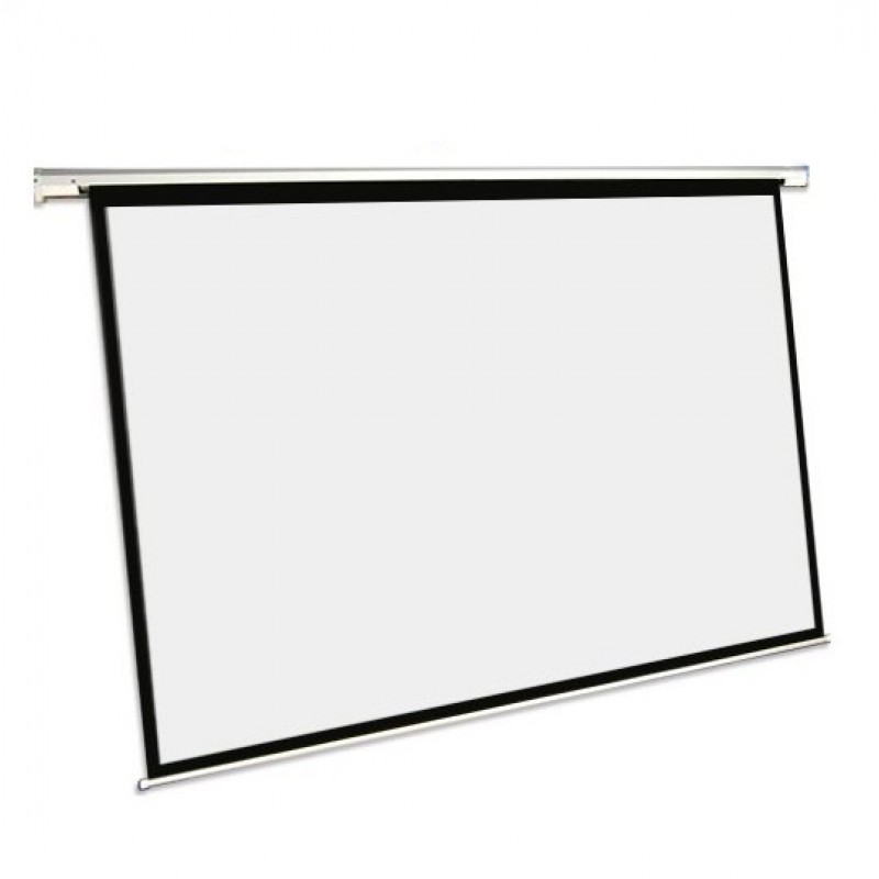 Моторизований проекційний екран має співвідношення сторін 4:3 і розмір по діагоналі 84' дюйма, що становить 213 см. Полотно Matte White виконане з щільного непрозорого матеріалу (вініл), здатного рівномірно розподіляти світло, що виходить від проектора. З лівого боку від екрану розташований мережний кабель для підключення в розетку електромережі 220 Вольт довжиною 3 м. На цьому дроті знаходиться блок керування моторизованим екраном з кнопками 'вгору' і 'вниз'.