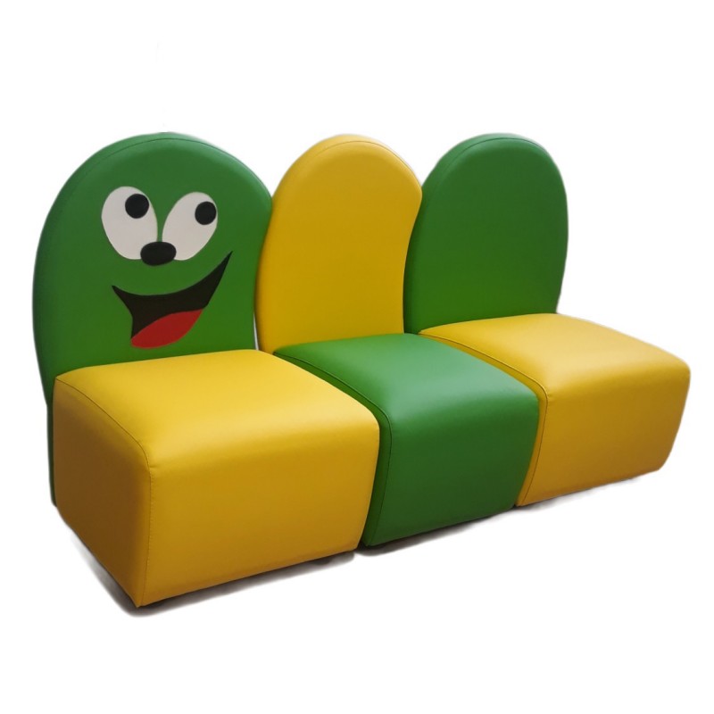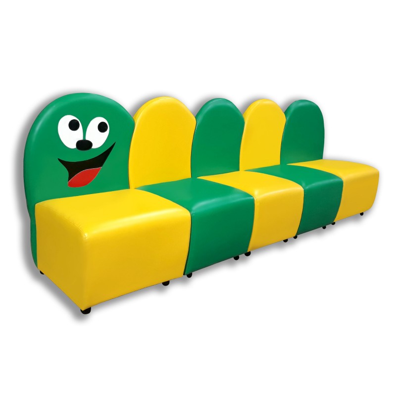 Комплект дитячих меблів Гусениця складається із 5 модулів трьох видів крісел. Модульний комплект Гусениця забезпечить комфорт, а також стане функціональною окрасою будь-якого приміщення. Різноманітність фігур за розмірами та невелика маса дозволяє дітям самостійно пересувати модулі. Відсутність гострих, твердих кутів забезпечує безпеку малюків під час гри.